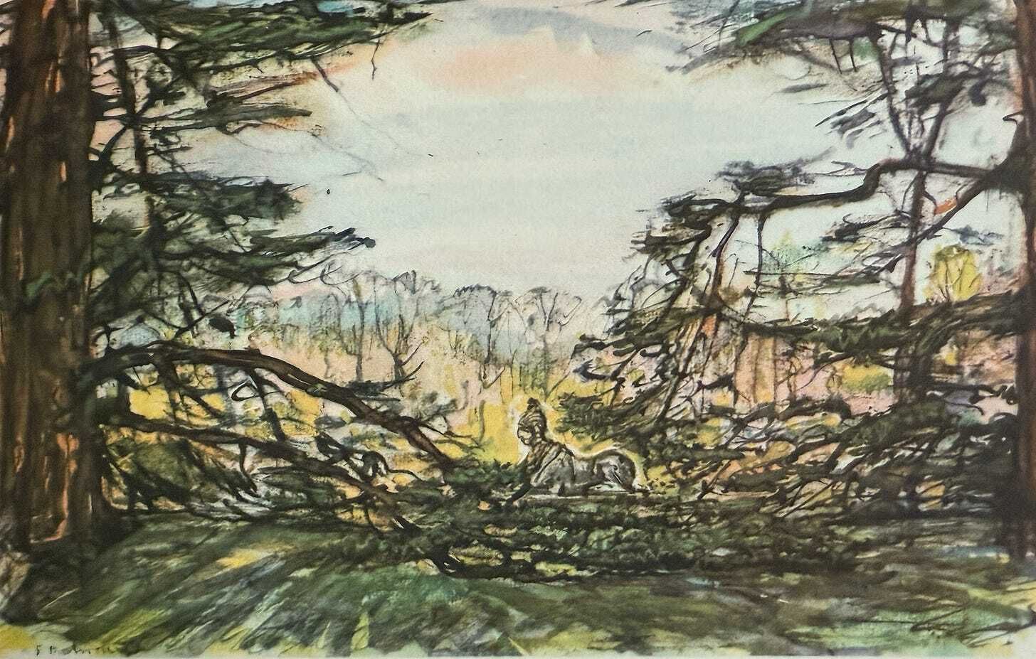 A.S. Hartrick, Chiswick House, The Cedars And The Sphinx, c1940. V&A Museum, London.